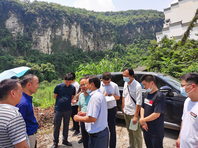 ▲水利局總工劉克清向長江設(shè)計(jì)院介紹黃柏河分水口