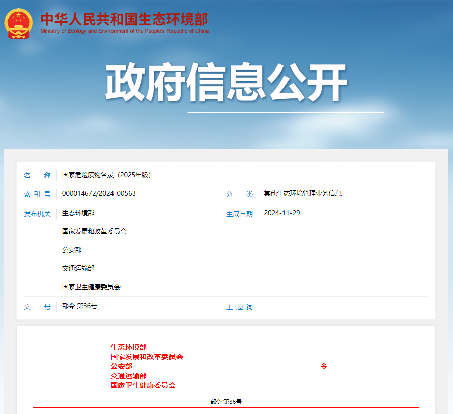 國(guó)家危險(xiǎn)廢物名錄(2025年版)審議通過