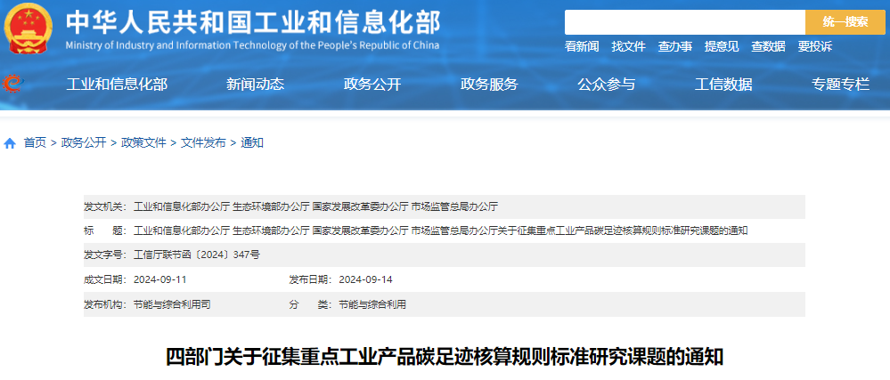工信部等部門(mén)關(guān)于征集鋰電池、新能源汽車(chē)、光伏和電子電器等重點(diǎn)產(chǎn)品碳足跡核算規(guī)則標(biāo)準(zhǔn)研究課題的通知