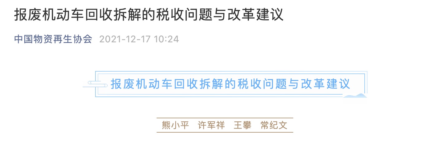 為解決報廢機動車拆解行業(yè)稅收問題,玉成有限公司董事長王攀先生攜手行業(yè)大咖,共同提出《報廢機動車回收拆解的稅收問題與改革建議》。